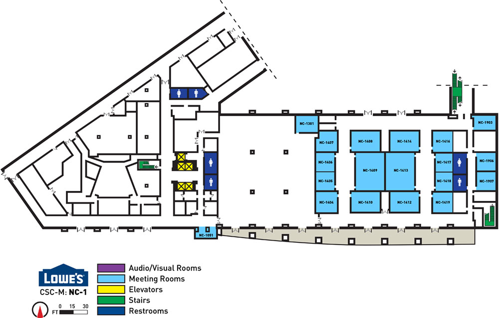 Developed in Adobe Illustrator from architectural site drawings for use in meeting room location maps.
